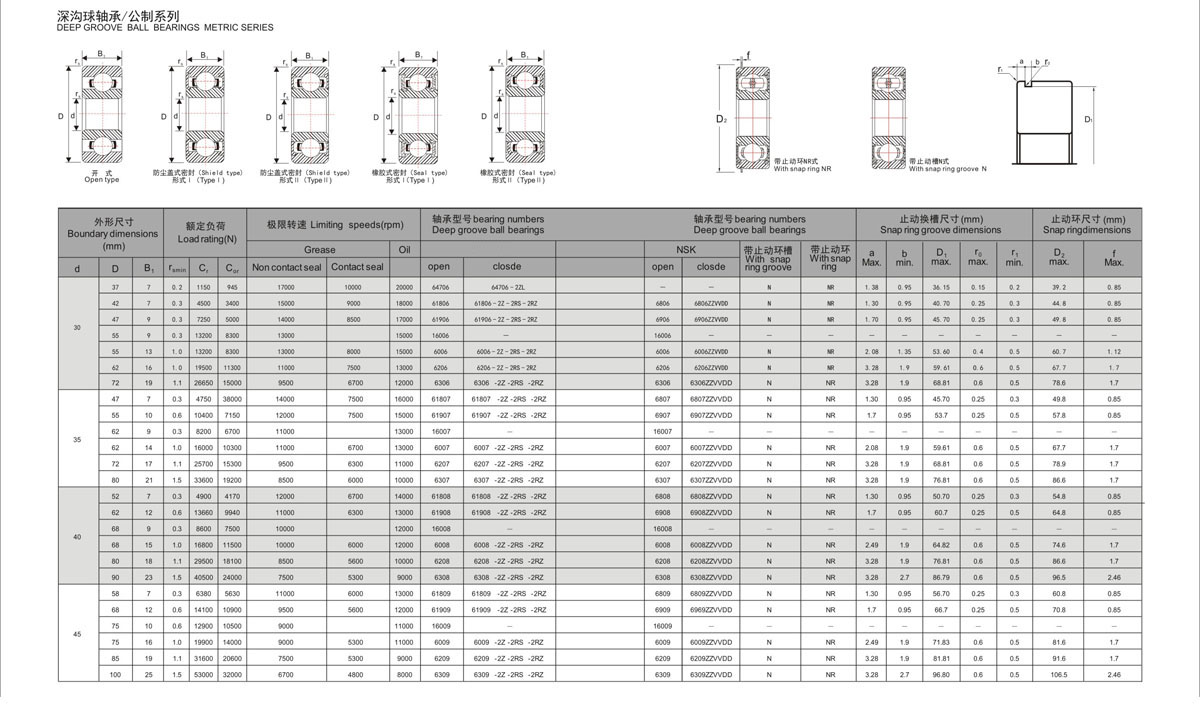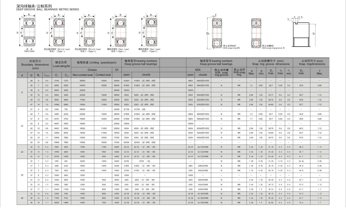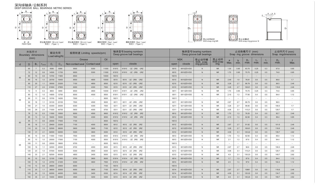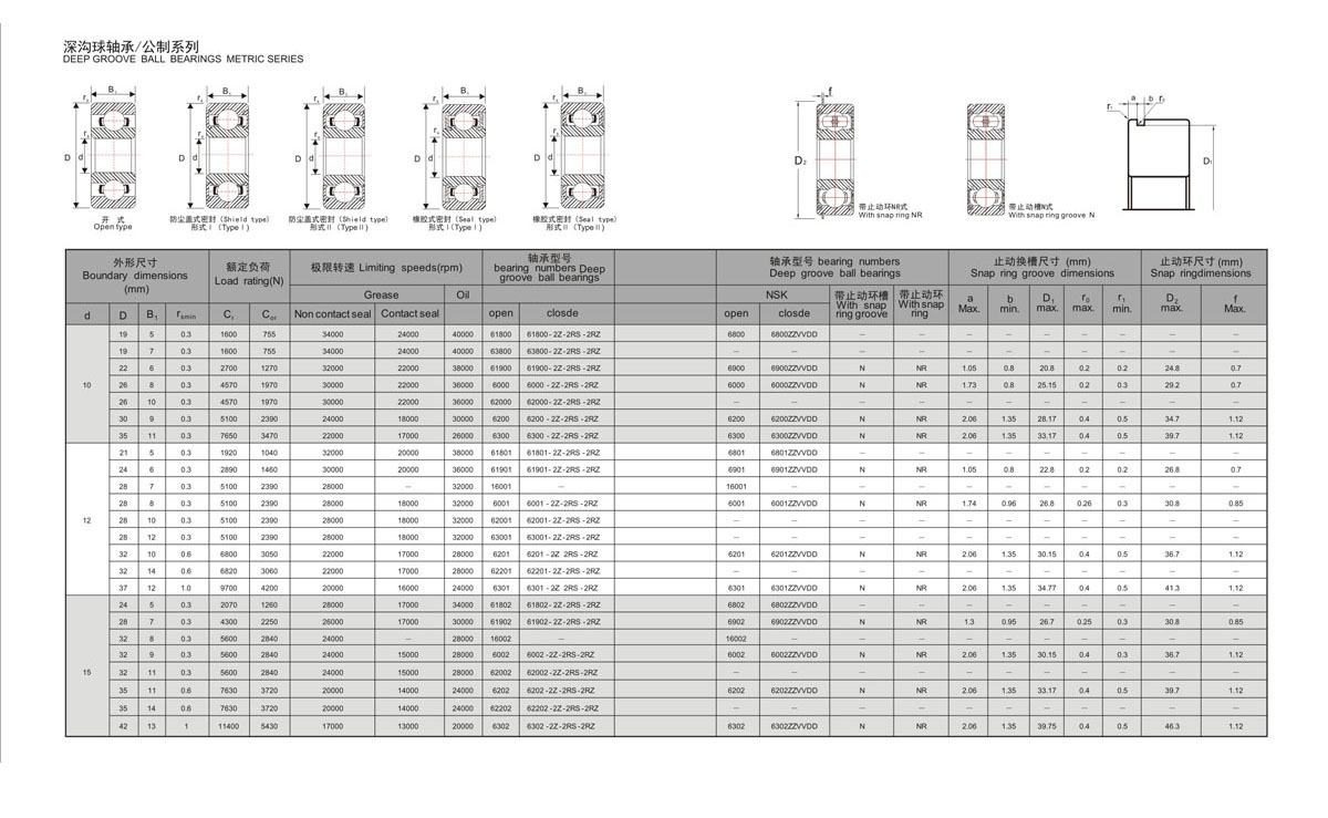 密封形式: OPEN, Z, ZZ, RS, 2RS, 2RZ